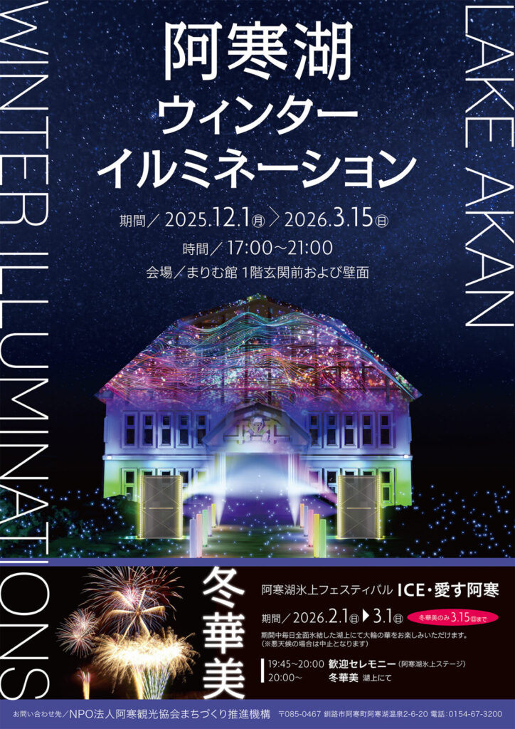 阿寒湖ウィンターイルミネーション20252026釧路市阿寒町イベント観光イルミネーション企画制作オペレーションテクニカルディレクション映像ディレクション映像制作映像技術演出プログラミング照明技術管理運営