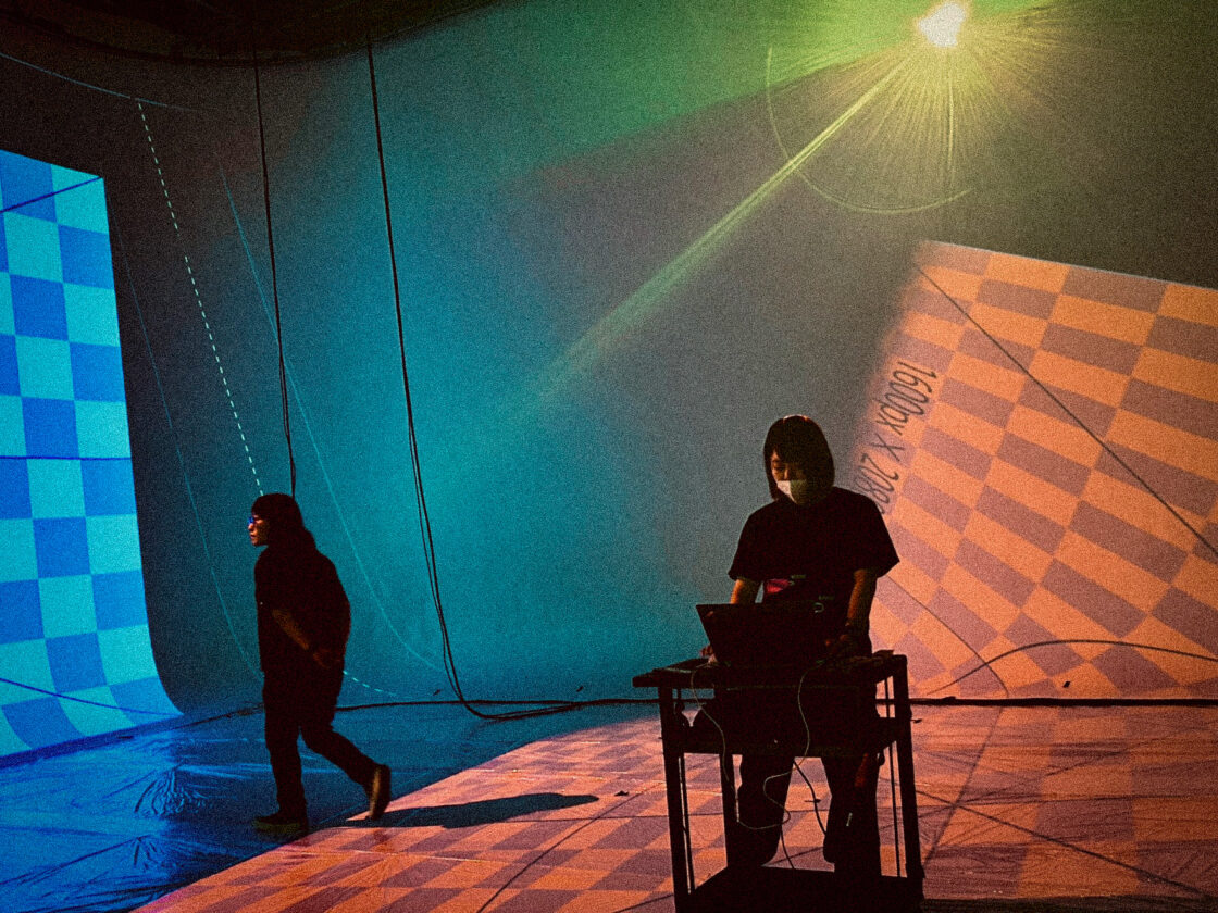 スタジオ内にて3台のプロジェクターをブレンディングし、プロジェクションマッピングを行なっています。