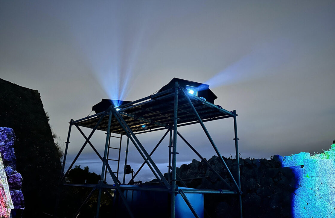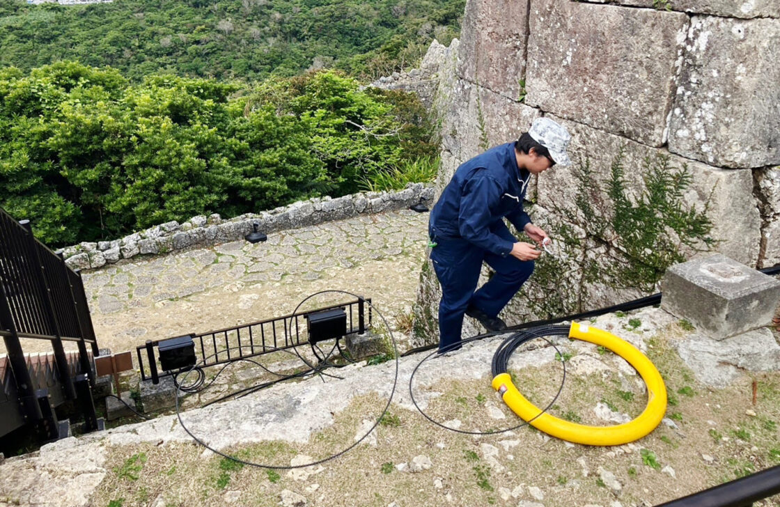 城跡自体が高台に位置しており海も近いため、強風や機材への塩害対策など、さまざまな課題をクリアする必要がありました。