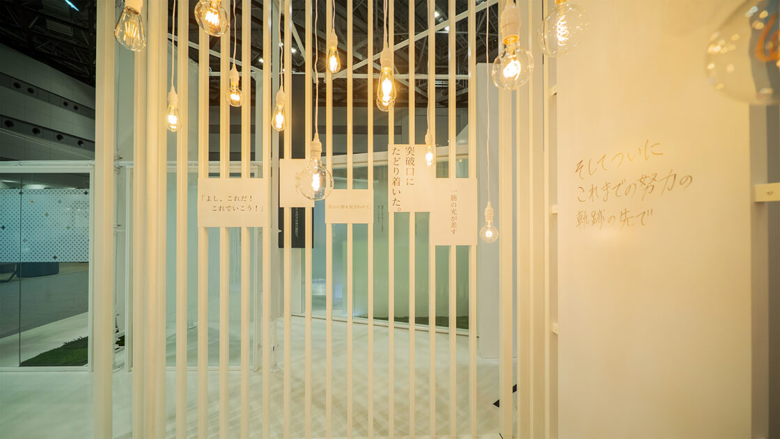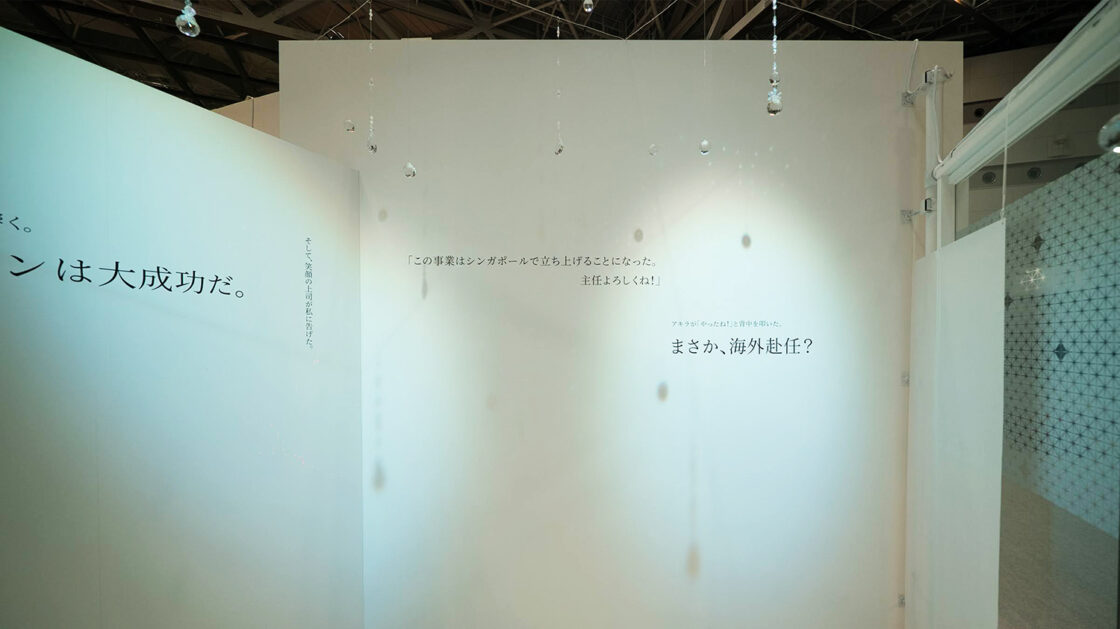 今年のコマニー株式会社のブースのテーマである「旅する小説」。物語を読み、選びながら歩みを進めることで、感情や気づきが深まる空間です。